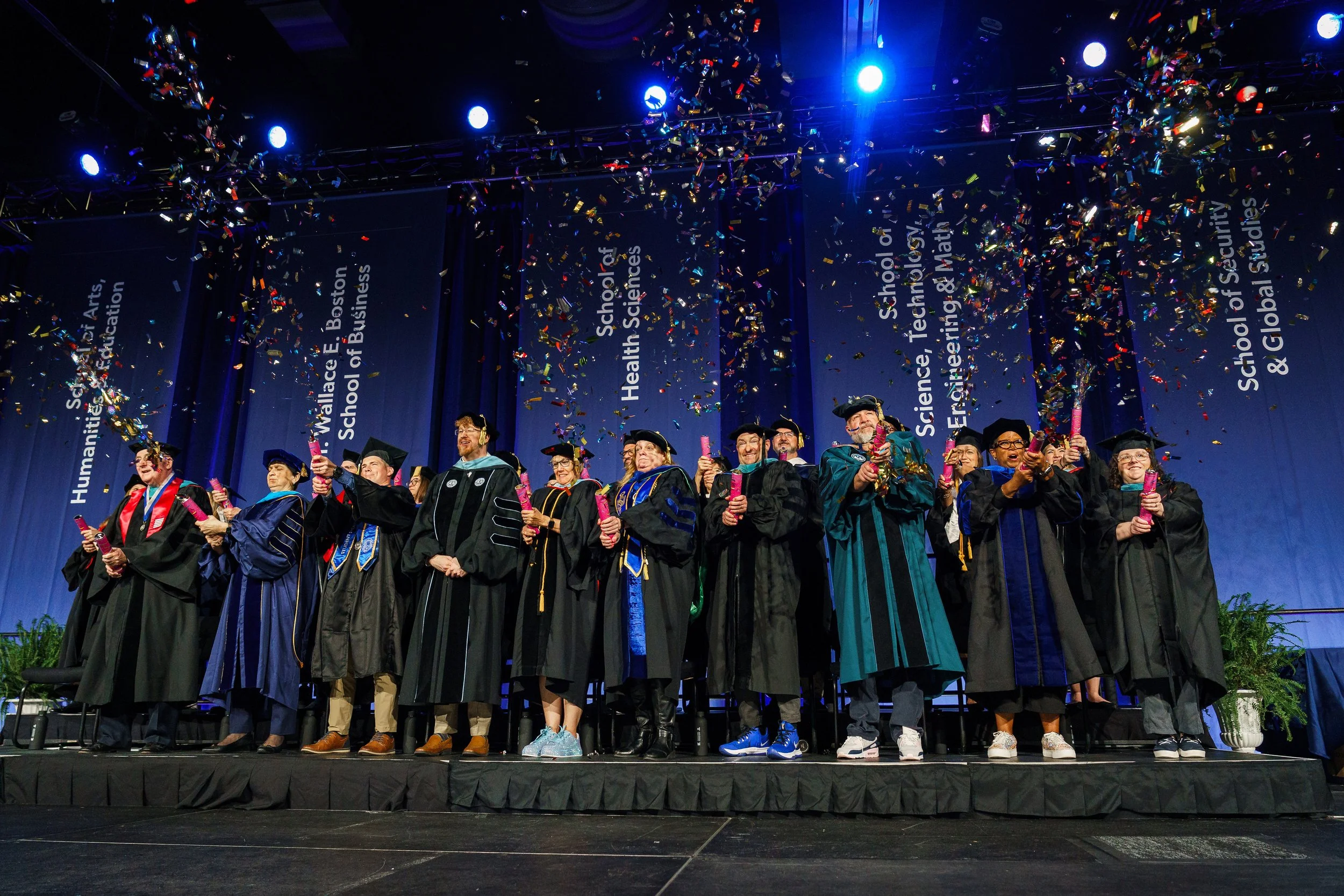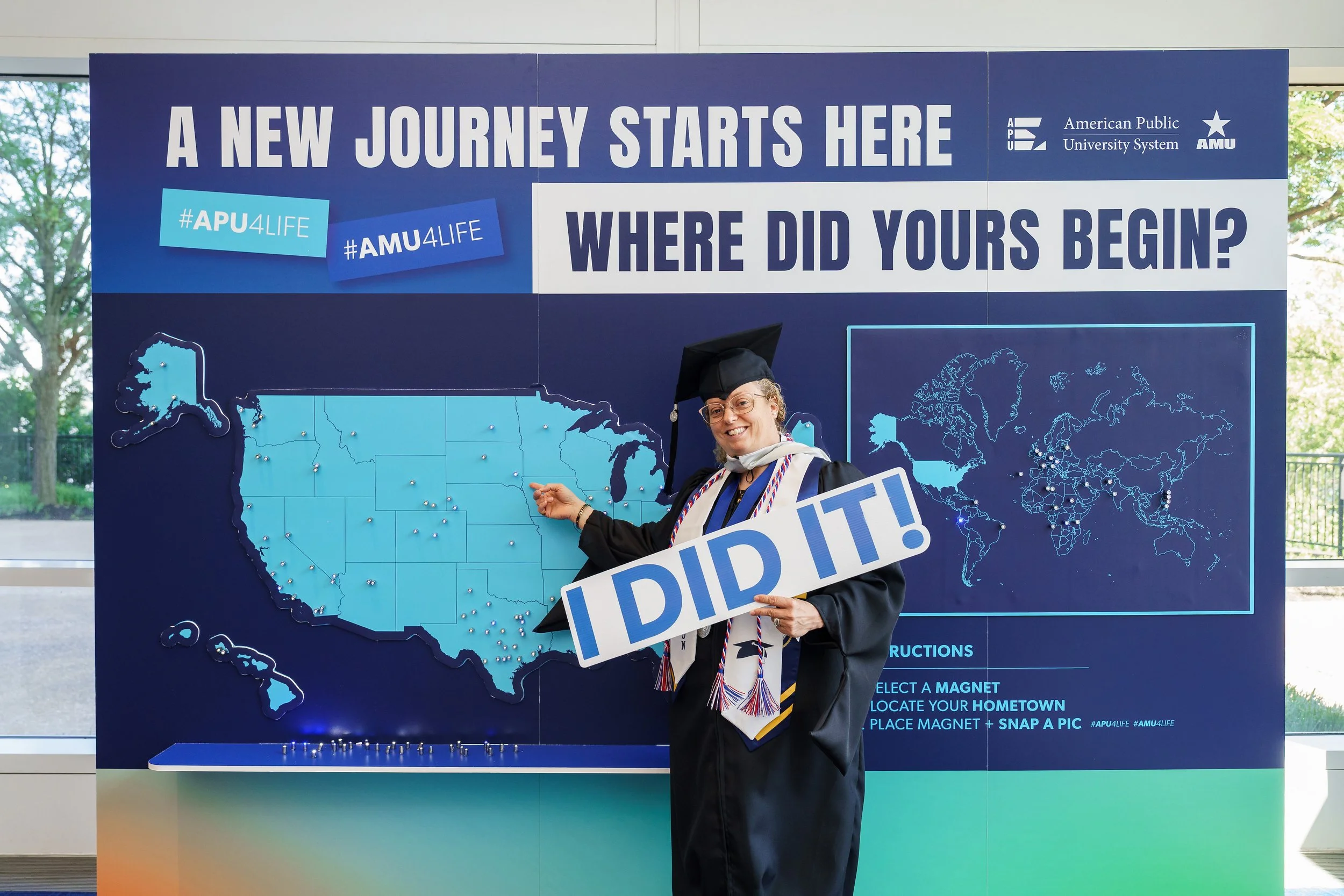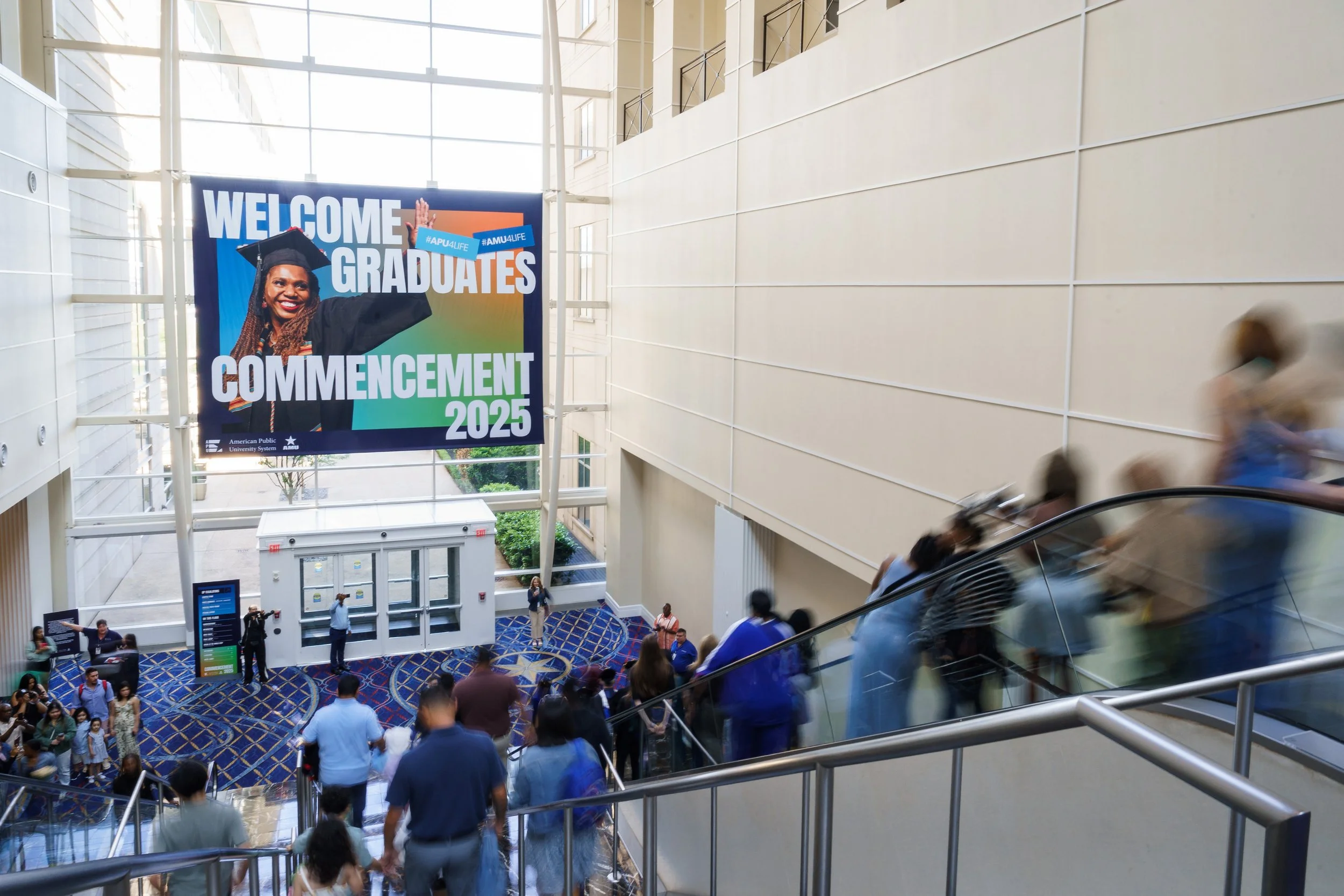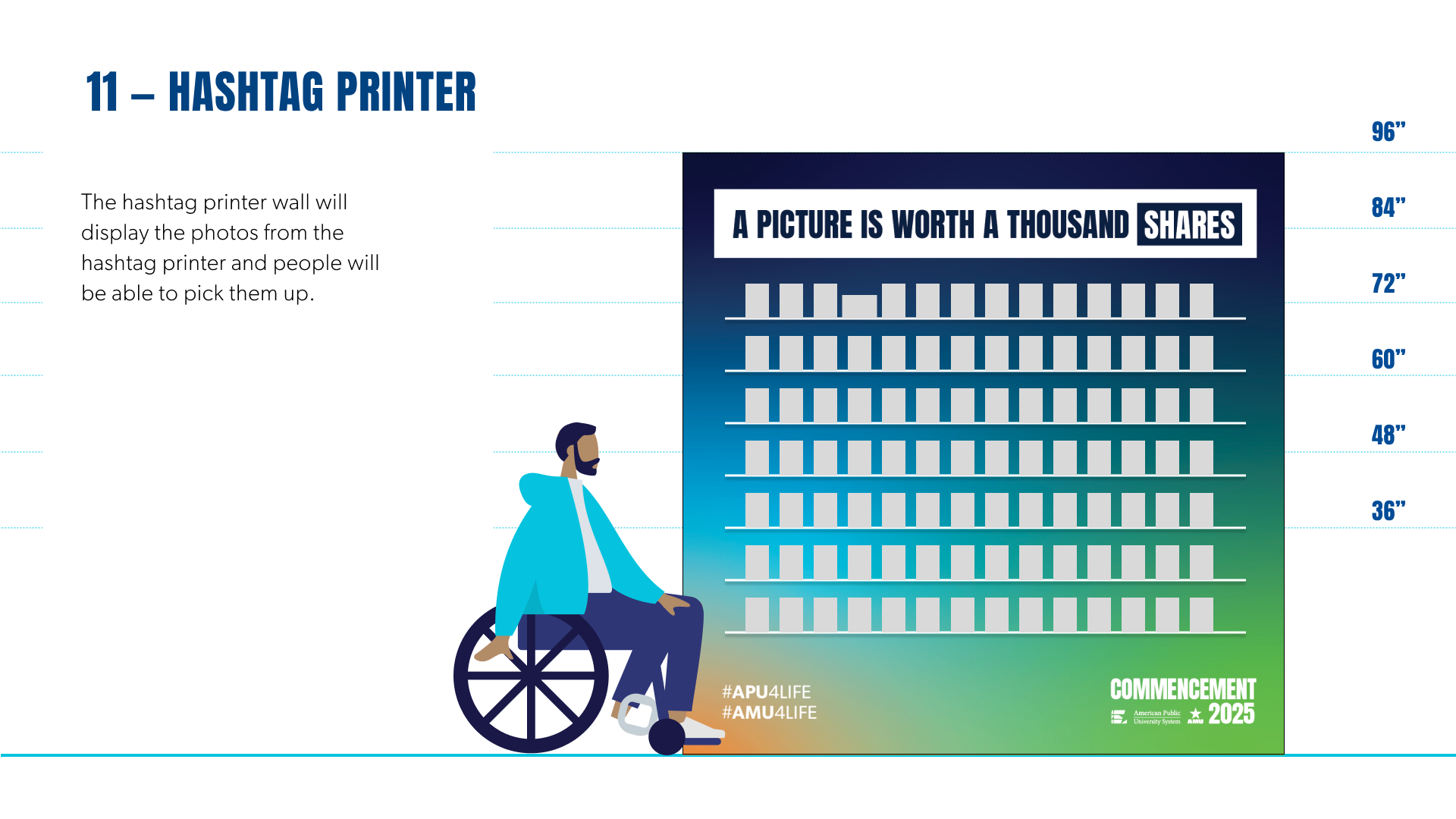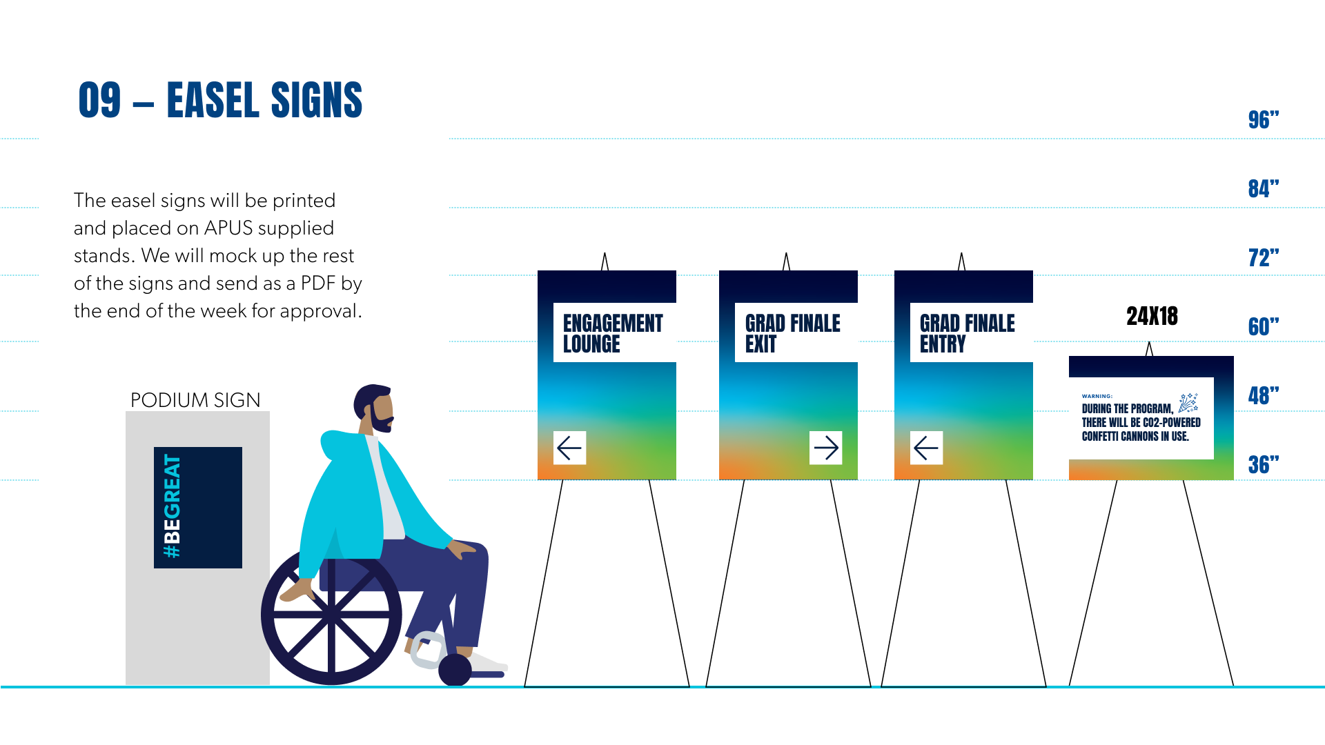 The American Public University System sought a full team to support their Commencement for 2025. The Happily Team brought together a team of producers, designers, creative directors, a/v, set designers, and more to bring this vision to life. Our team supported the creative direction team and worked directly with the set designers to ensure every detail was buttoned up. We also worked to develop a cohesive wayfinding system that can be replicated in future years to create cohesion.