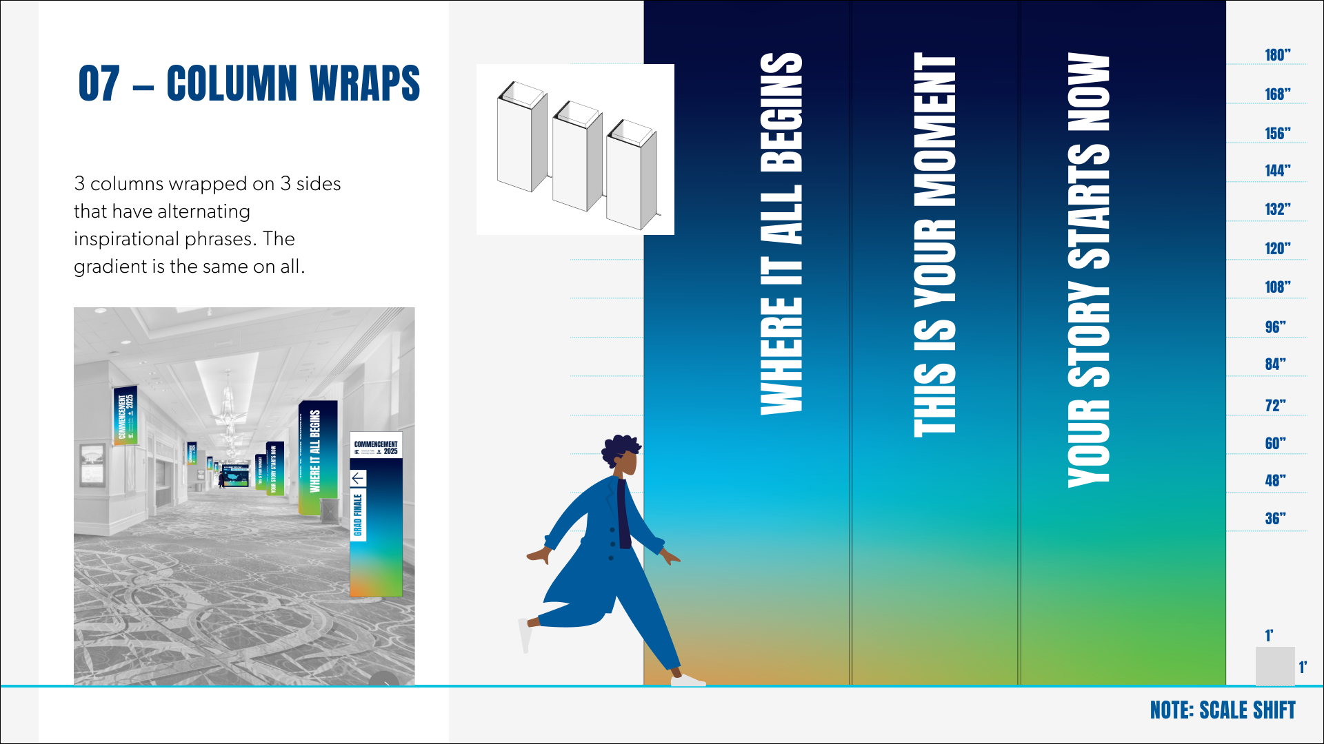 To create an immersive experience in the hallway for the line-up, we wrapped the columns with branded elements to serve as backdrops for photos.